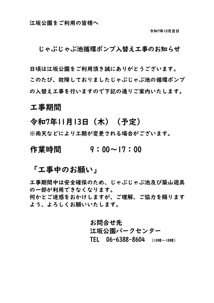水景遊具じゃぶじゃぶ池 ポンプ入替工事について