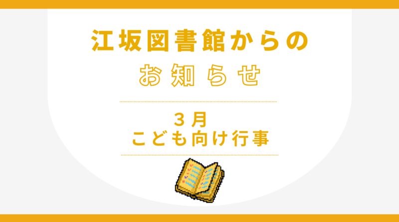 続きを読む江坂図書館から『3月こども向け行事』のお知らせです📣参加申込不要!料金もかかりません!ぜひ、お子さまと一緒に来館ください📖
